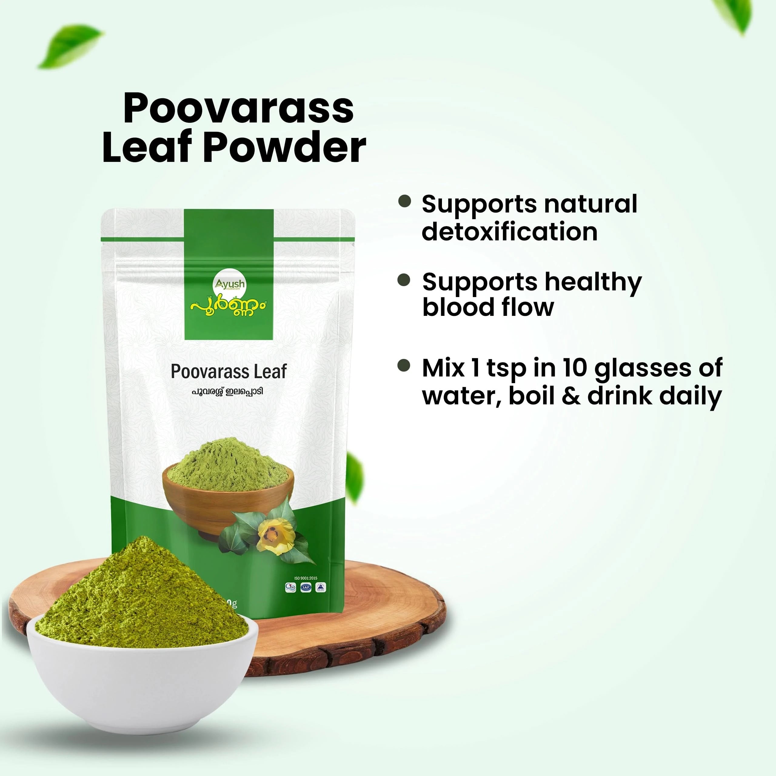 How does Poovarass Leaf Powder support circulation?